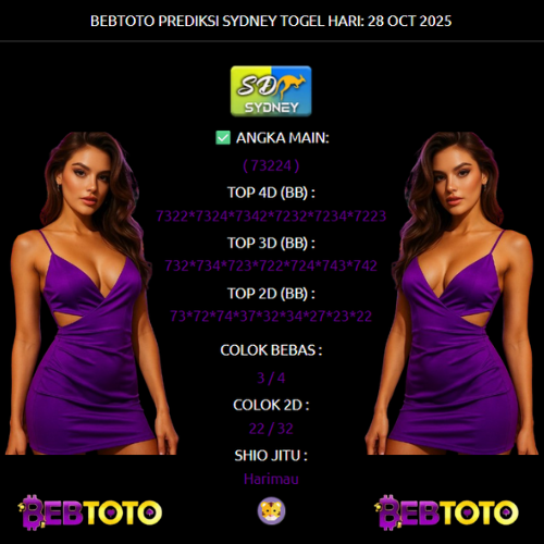PrediksiBebjitu adalah situs yang memberikan prediksi BOCORAN ANGKA SYDNEY setiap hari diberikan khusus untuk seluruh pecinta togel online dengan harapan mendapatkan hasil yang maximal.